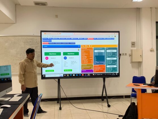 Materi pelatihan disampaikan oleh dosen pengampu mata kuliah Simulasi Bisnis yang memberikan pembekalan langsung terkait alur simulasi, pengambilan keputusan manajerial, serta strategi asistensi yang efektif.